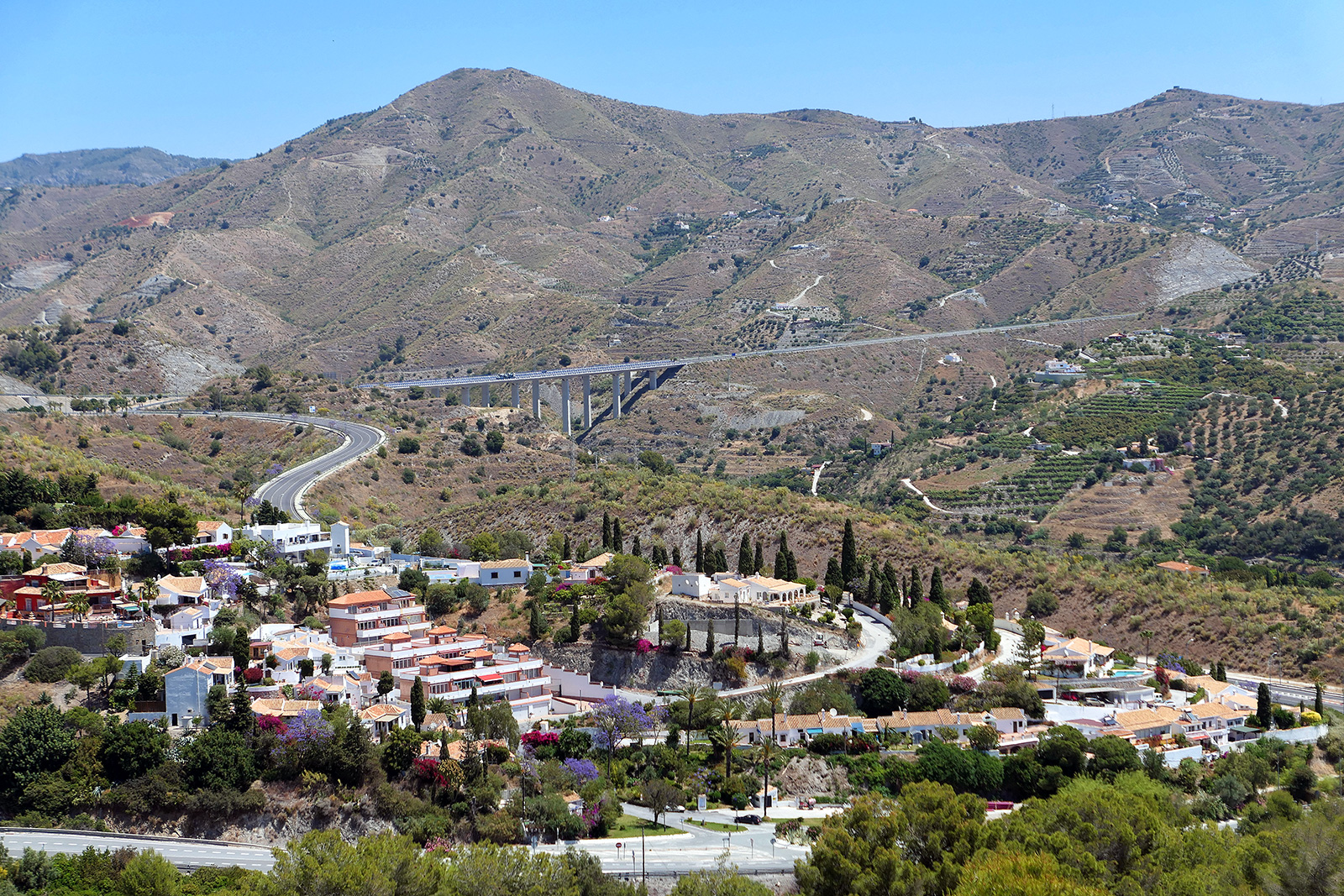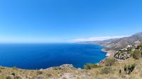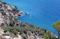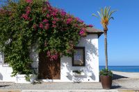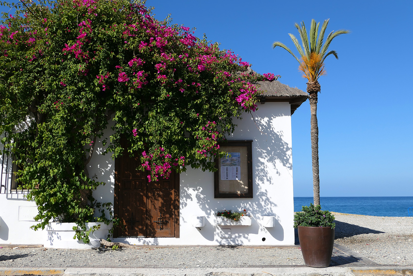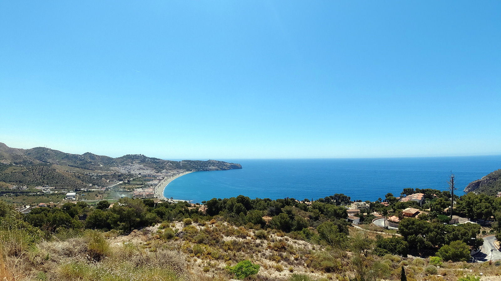 Der Flieger war voll und die dreieinhalb Stunden Flug waren nicht so angenehm. Am Flughafen in Malaga wurden wir von einem Mitarbeiter der Leihwagenfirma abegeholt, der uns zu unserem Citroen C3 brachte. Navi ein und los ging die Fahrt Richtung La Herradura. Nach ein paar Minuten konnten wir auch schon das tiefblaue Mittelmeer sehen. Die Fahrt war kurzweilig und interessant. Etwa um acht Uhr hatten wir das Ferienhaus nach kurzer Suche erreicht. Das Haus ist in die steilen Hügel über dem Ort gebaut. Es war noch richtig hell weil wir schon recht weit westlich waren und die Sonne dort später untergeht. Zum Abendessen besuchten wir ein Fischrestaurant direkt am Meer.