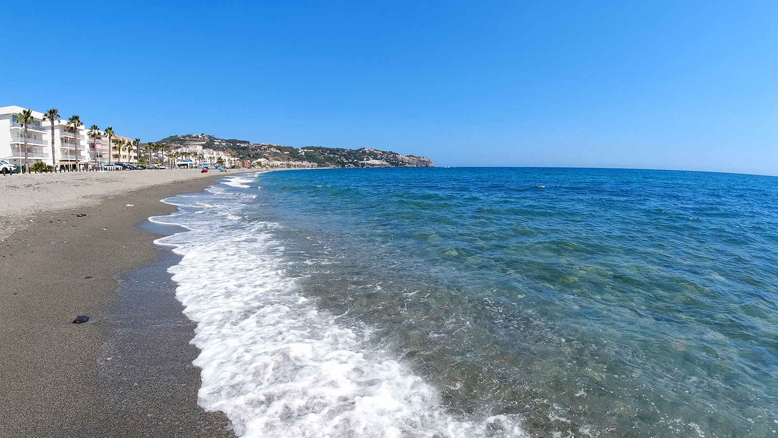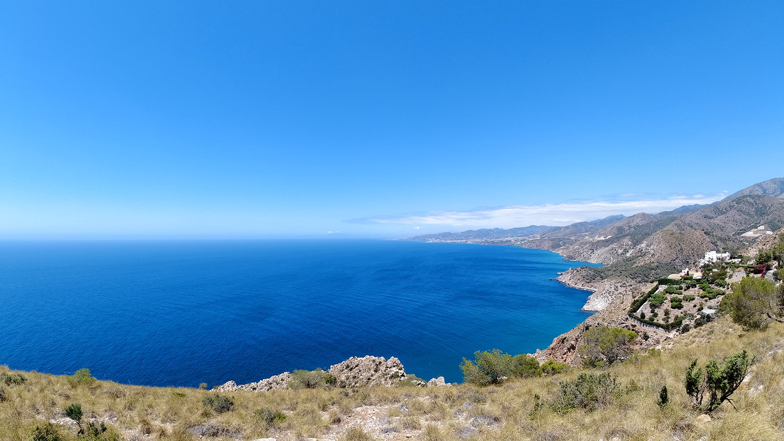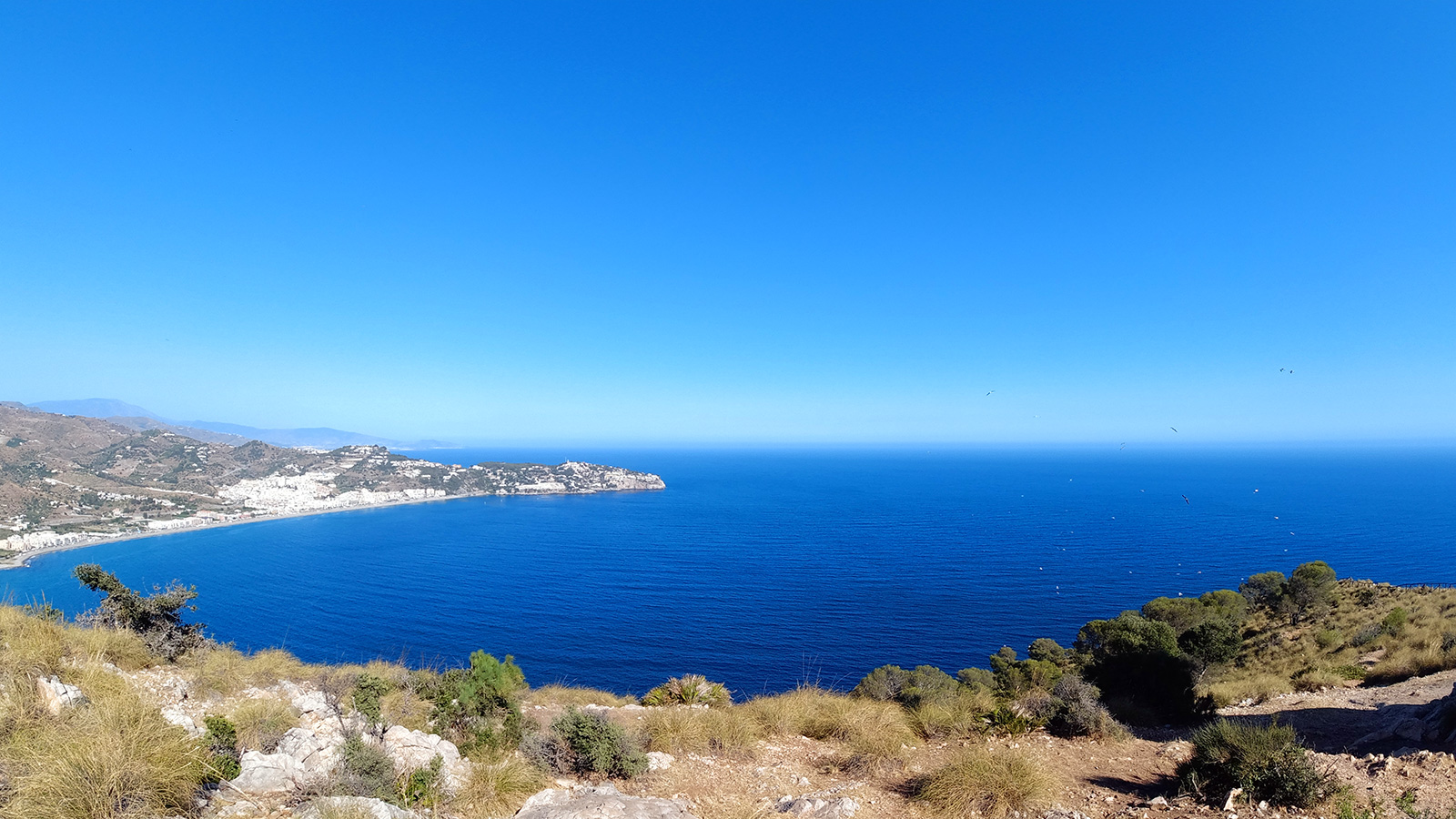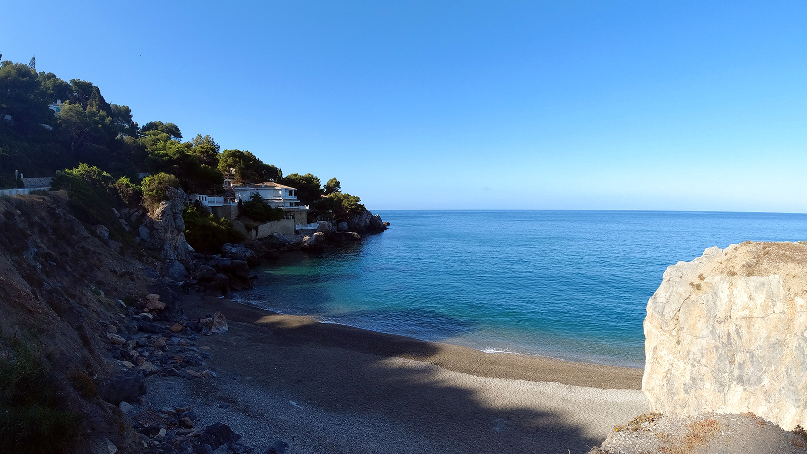Nach dem Frühstück am Donnerstag, bin ich mit Sissi zum Meer hinunter gegangen und wir spazierten die ganze Bucht entlang bis zum östlichen Ende. Am Strand habe ich dann meine Drohne gestartet und die wurde sofort von unzähligen Schwalben attakiert. Ich musste sie gleich wieder herunterholen. Wieder zurück im Ferienhaus gab es ein Spätaufsteherfrühstück mit den Kindern. Dann wanderte ich zum westlichen Ende der Bucht wo auf der Anhöhe ein alter Wachturm steht und es einen fantastischen Ausblick gibt. Später fuhr ich mit Sissi und den Kinden mit dem Auto nochmals dorthin. Abends besichtigten wir die Altstadt von La Herradura und nach dem Abendessen gingen wir noch zum Meer um den Sonnenuntergang zu genießen.
