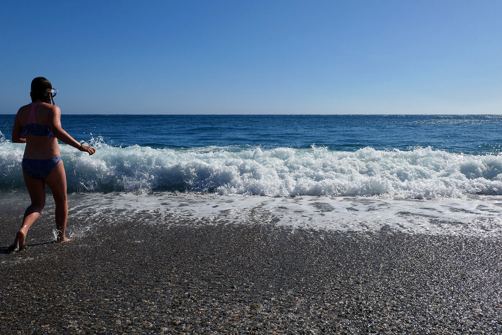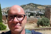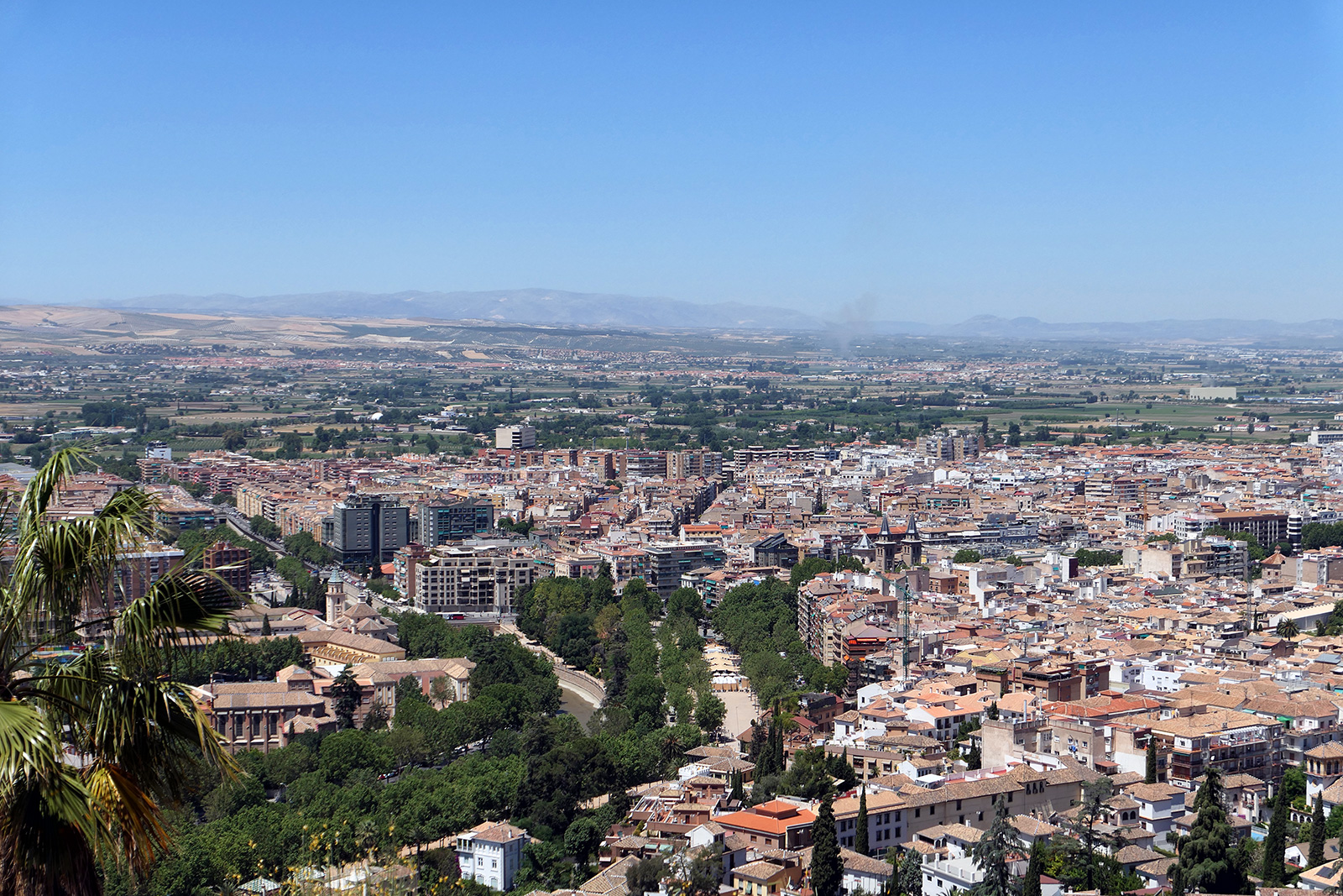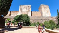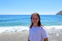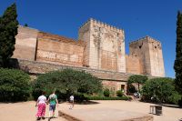 Am Freitag fuhren wir nach Granada, um uns die Alhambra anzusehen. Es war keine Wolke am Himmel und die Fahrt war wieder sehr abwechslungsreich. Die Autobahn führte entlang der Sierra Nevada, wo auf den Bergspitzen noch Schnee lag. Dann ging es an Granada vorbei, hinauf zur Alhambra, eine unvorstellbar riesige Burg mit Schloss im Inneren und vielen wunderschönen Gärten. Es waren fast schon alle Parkplätze belegt und sehr viele Touristen unterwegs. Wir besuchten nur den frei zugänglichen Teil der Alhambra und eine Ausstellung klassischer und moderner Kunst. Weil in der Ausstellung fotografieren verboten war, knipste ich nur das Wichtigste. Den Nachmittag verbrachten wir am Strand. Das Wasser war kristallklar und angenehm kühl. Wir hatten riesigen Spaß mit den Wellen, die am Abend immer heftiger wurden. Zum Abendessen gab's einen kleinen Snack in einer Bar und dann blieben wir noch kurz am Ende der Bucht stehen, um uns vom Meer zu verabschieden.