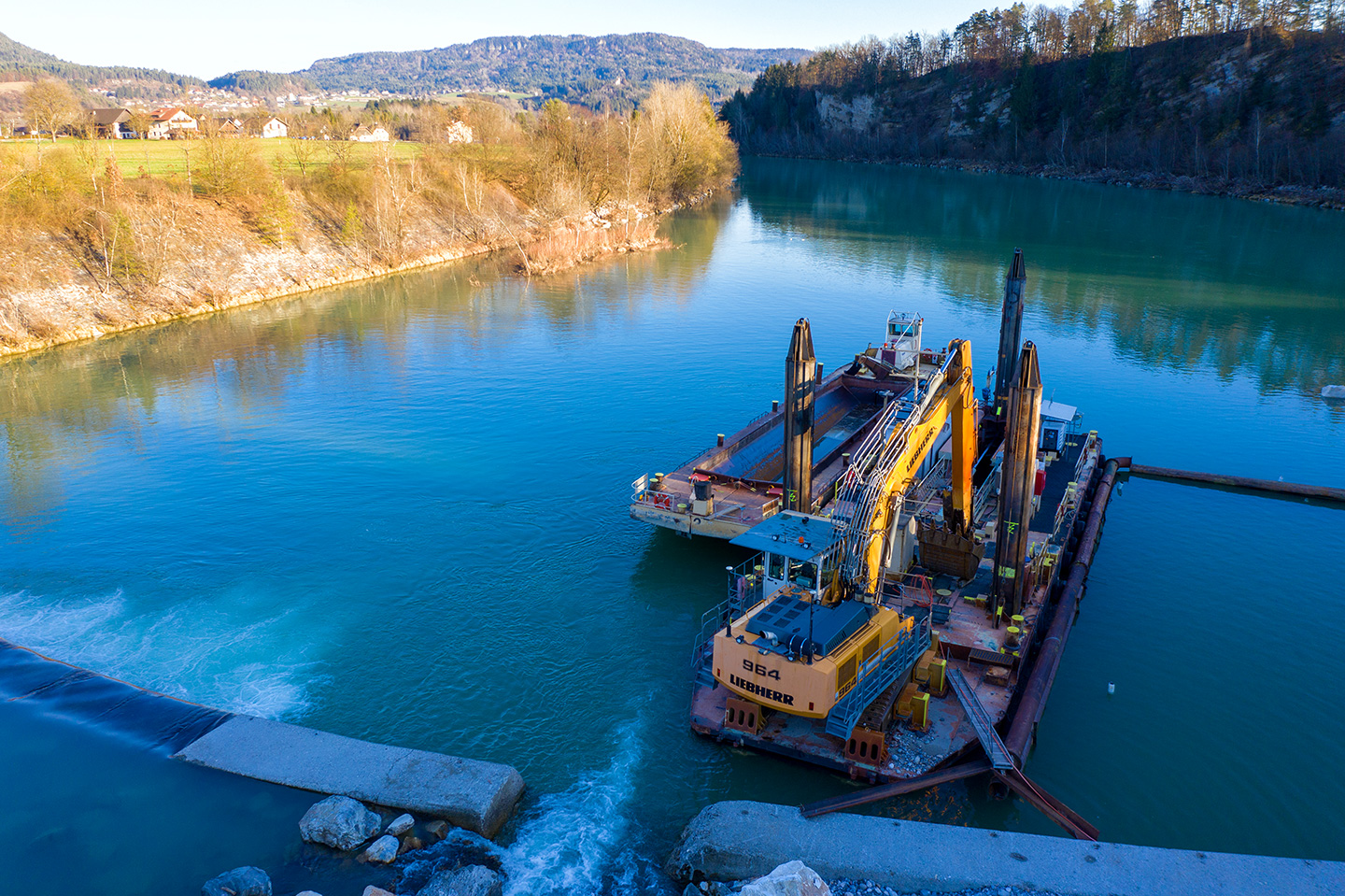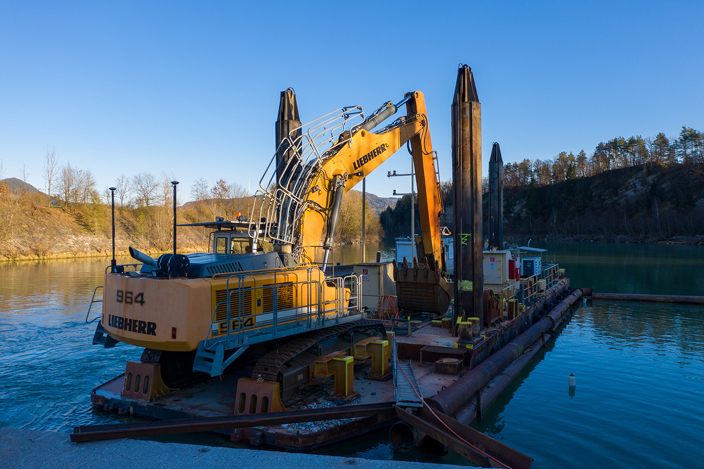 Heute habe ich meinen Rucksack gepackt und bin zum Kraftwerk Mühlbach spaziert. Im Sommer konnte ich dort richtig schöne Bilder machen. Auf Höhe der Kläranlage hatte ich schon Sorge, das die Sonne schon hinter den Bergen verschwindet und ich mangels Licht wieder abziehen muss. Das Ufer war schon im Schatten aber das Baggerschiff, das dort vor Anker lag, war noch gut beleuchtet. Also bin ich mit der Drohne drübergeflogen und konnte sogar noch einen kleinen Film machen.