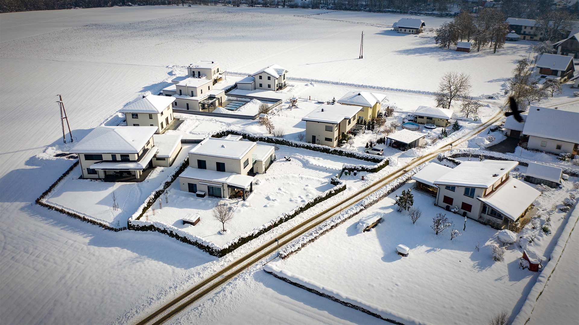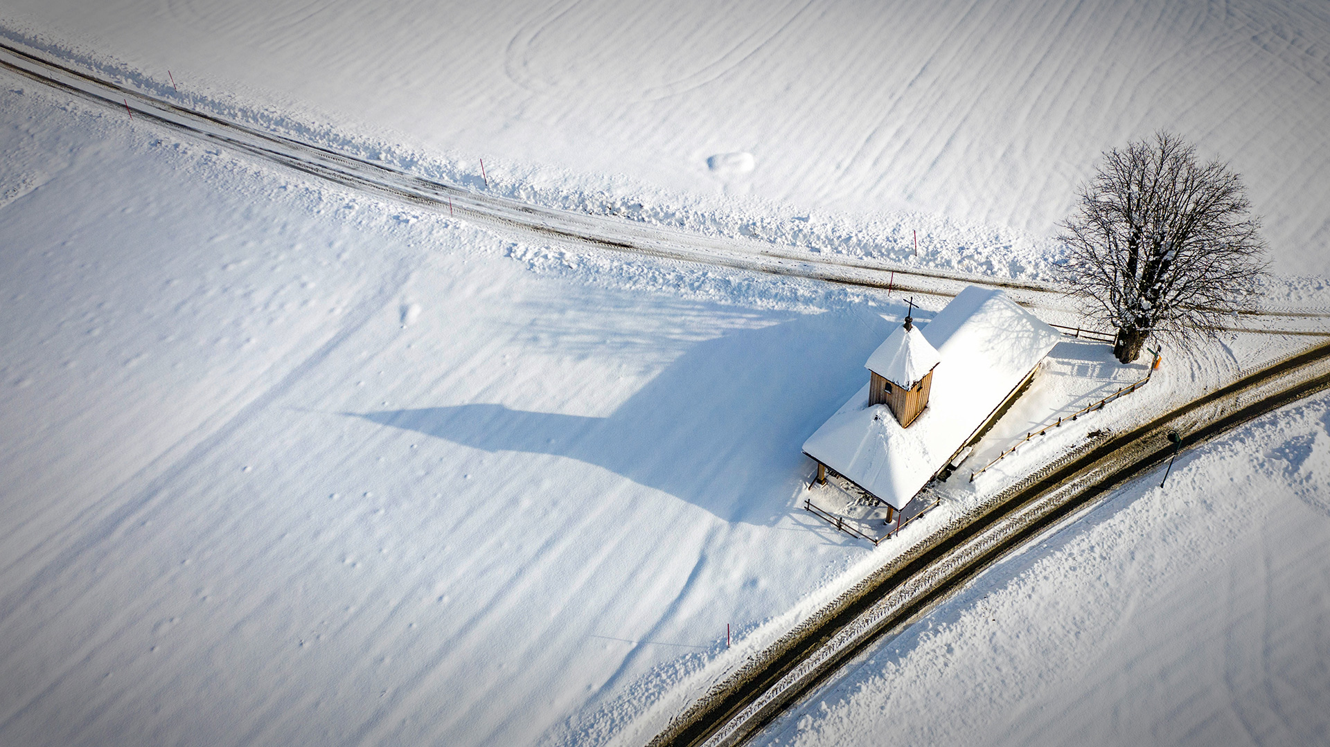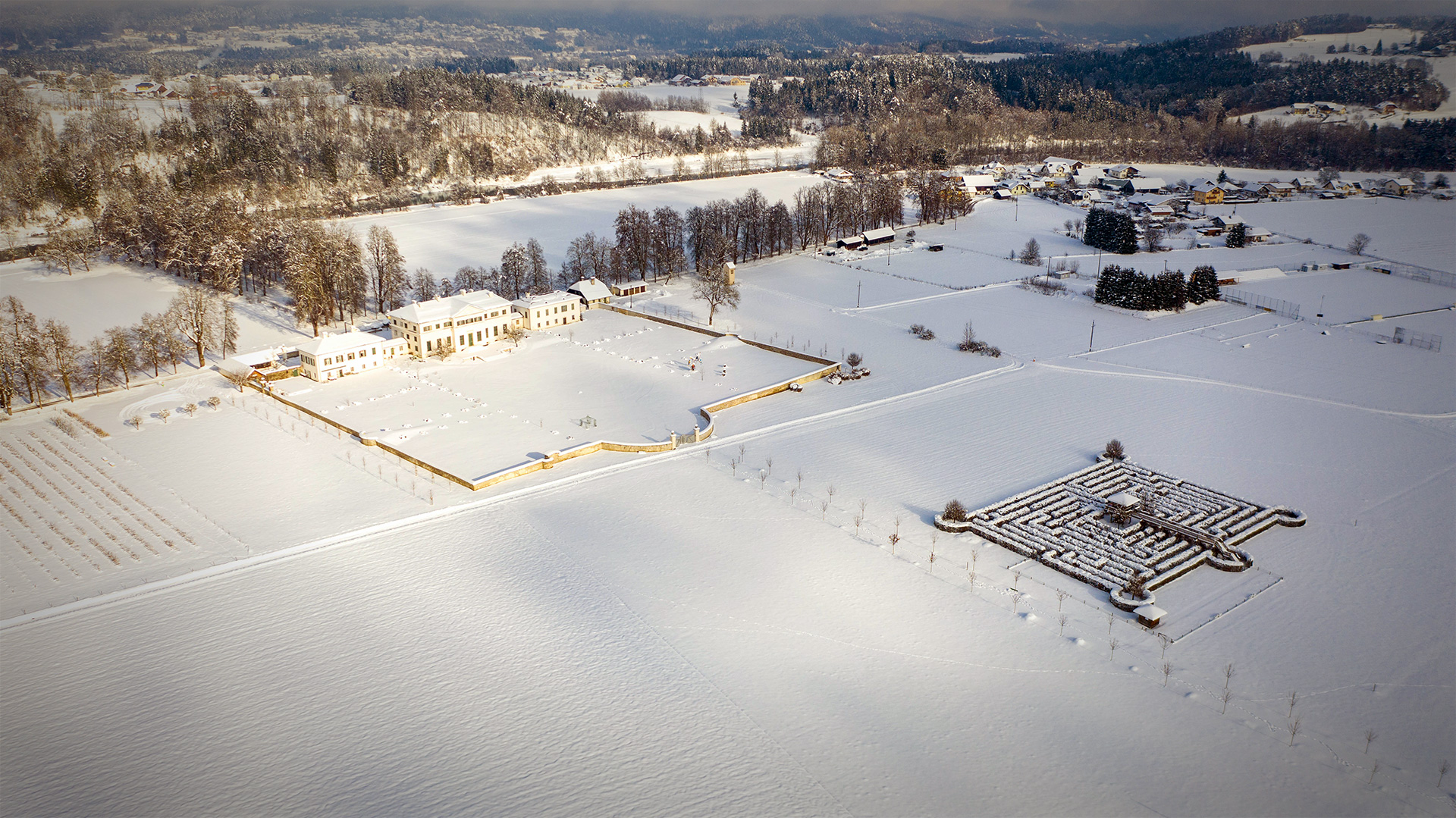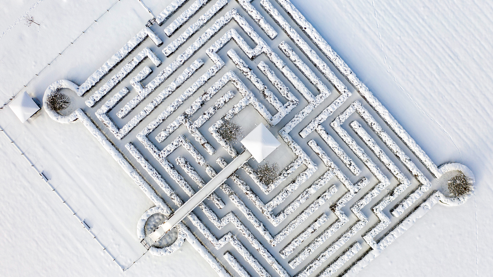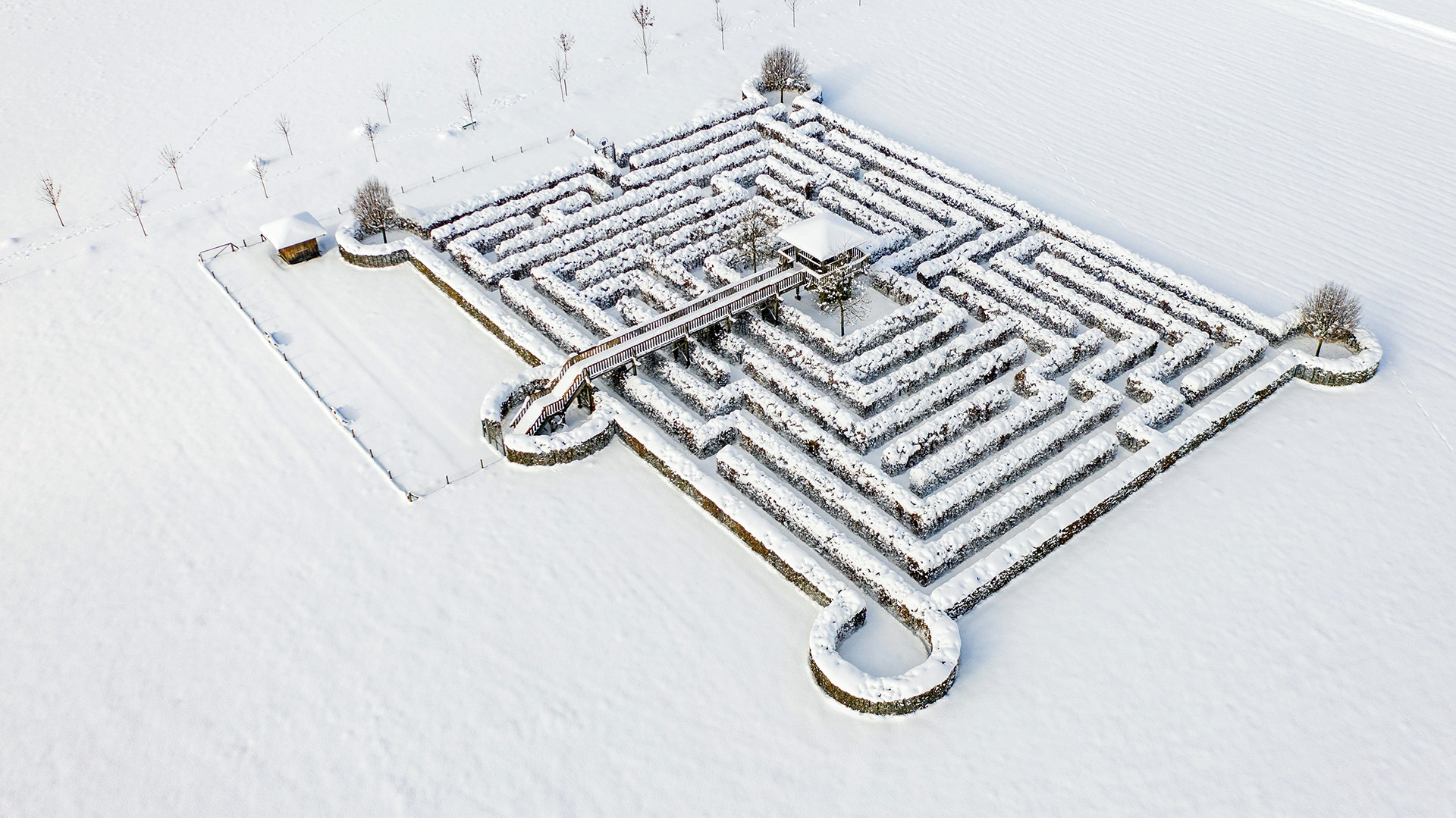 So viel Schnee hatten wir Jahre nicht! Ich genieße den Weihnachtsurlaub und bin froh, dass ich das Auto nicht viel bewegen muss. Ich bin eigentlich jeden Tag unterwegs um Bilder zu machen aber meistens ist das Wetter trüb. Als heute die Sonne zum Vorschein kam, bin ich mit der Drohne schnell zum Labyrinth gegangen um ein paar Aufnahmen von der Situation von oben zu machen.